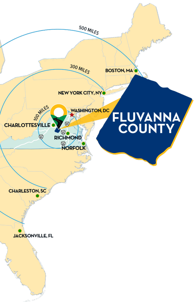 Here, you’ll find the perfect combination of lower operating costs, available properties that fit your needs, proximity to thriving Virginia metropolitan markets, and the support required to scale. Situated in the geographic center of Virginia, Fluvanna County offers excellent access to I-64, I-81, I-95, CHO and RIC airports, major ports, and more.